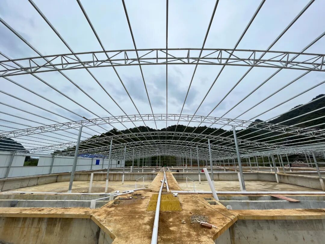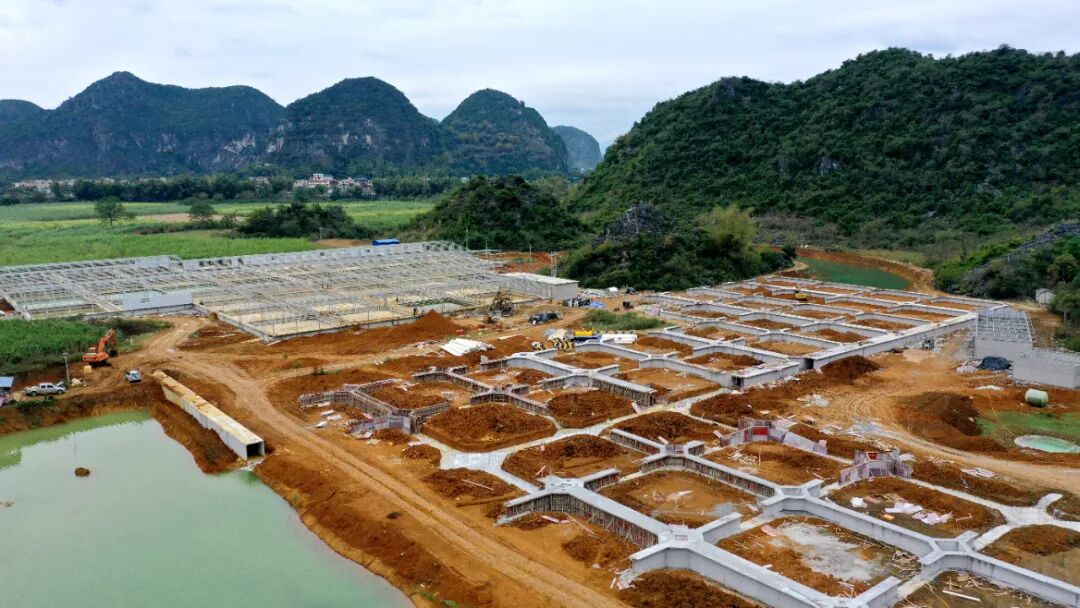 近日,记者走进上林县白圩镇金马生态智慧养殖基地,工人们正在进行最后的瓦板和加热系统安装,基地项目一期建设即将建成投产运行。